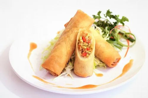 Our Veg Cigar Rolls are filled with a flavorful blend of herbs, and fresh vegetables, all wrapped in a crispy, golden-brown spring roll wrapper.