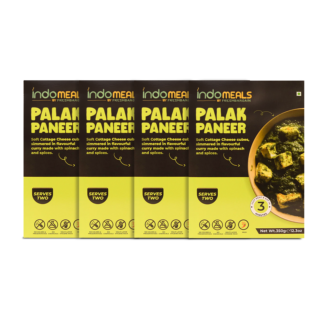 Chef cooked Ready to eat Palak Paneer, pack of 4 of 350gm each Instant solution for all your food cravings, Just Heat and Eat Shelf life: 18 Months; No Preservatives, Artificial Flavors or Colors Added; Safe and Hygienic Packaging We use authentic and hand ground spices to keep the homely essence intact in our instant meals A variety of mouth-watering dishes available