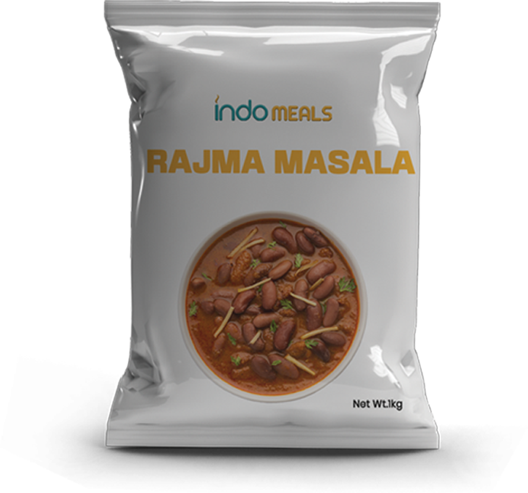Main ingredients include rajma (kidney beans), onion paste, tomato puree, water, cloves, black cardamom, salt, Kashmiri red chilli, coriander powder, ginger, garlic, red chilli powder, bay leaves, mace, cinnamon, garam masala, mixed spices, and edible vegetable sunflower oil.